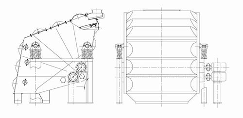 整體結構主要由這幾部分組成:帶分流裝置的進料口、支架、帶快速插銷的檢修上蓋、振動彈簧,振動電機、篩體等配件組成。振動彈簧連接在振動支架上,支撐著篩體,振動電機與篩體的安裝橋架進行布局安裝。帶快速插銷的檢修上蓋位于篩體上側,方便快捷打開上蓋查看篩網的使用情況。概率篩是根據雙振動電機自同步直線振動原理制成。在振動過程中由電機產生的縱向激振力(由于兩電機反向同步轉動橫向力抵消)使篩體沿水平面成一傾斜角度的方向作直線振動,從而使物料在篩網上向前不斷地拋物狀運動,達到篩分目的。各層篩網沿箱體傾斜不同的角度并且相互間隔一定距離進行布置。大傾角布置的篩網使得篩網在過載的情況下也不至于被撕裂。